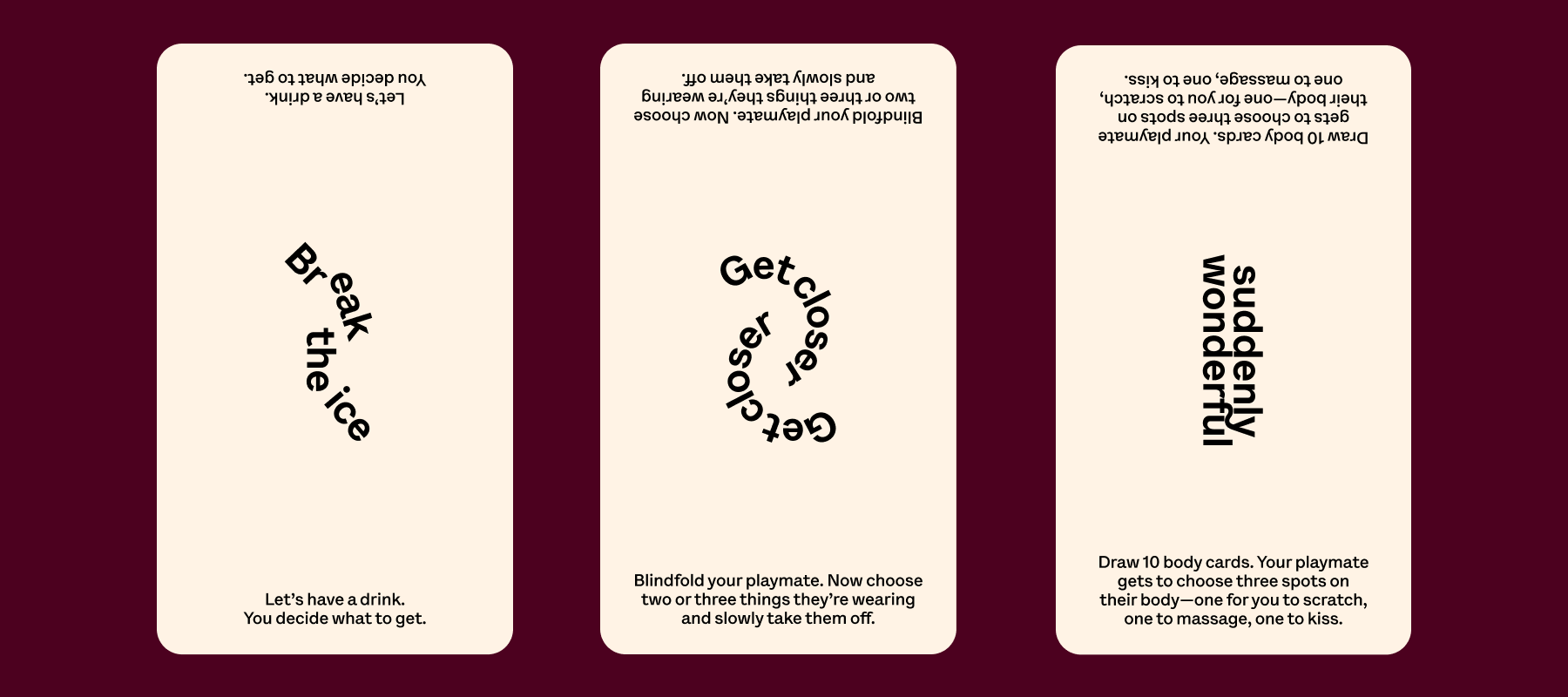 Spielt durchs ganze Deck – oder vergesst die Regeln und folgt dem Moment.